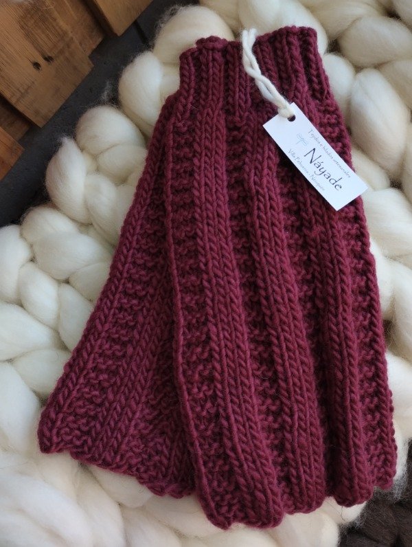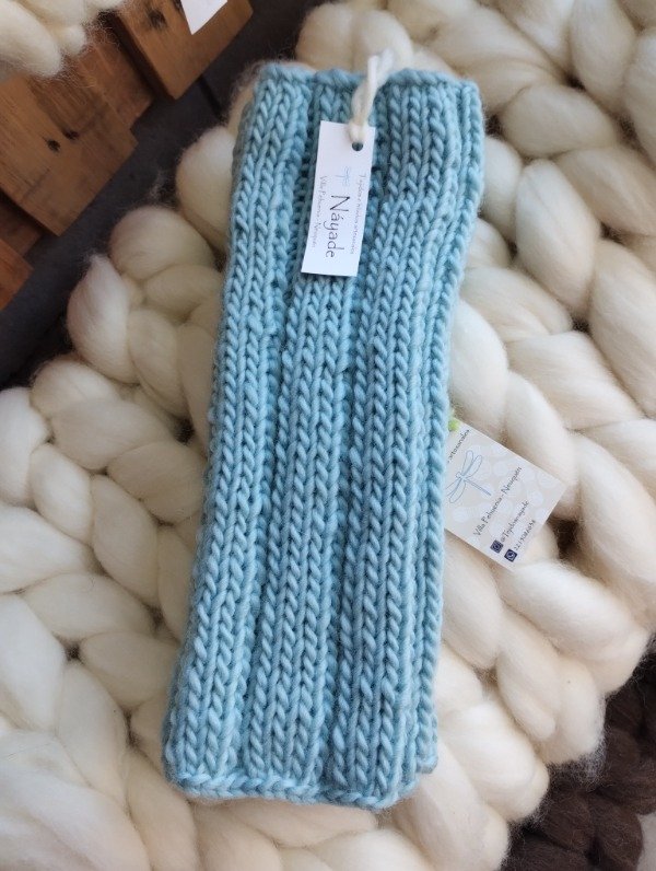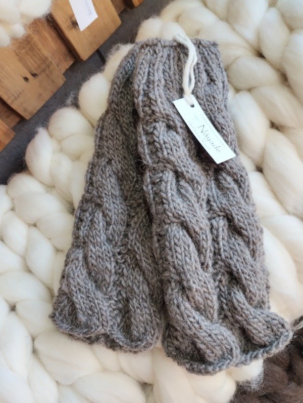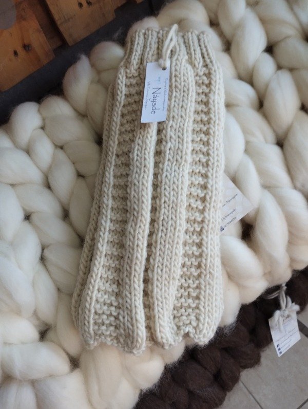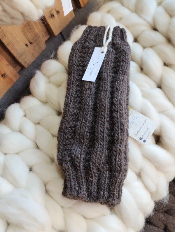 Polainas tejidas en tricot con lana pura de oveja Corriedale.